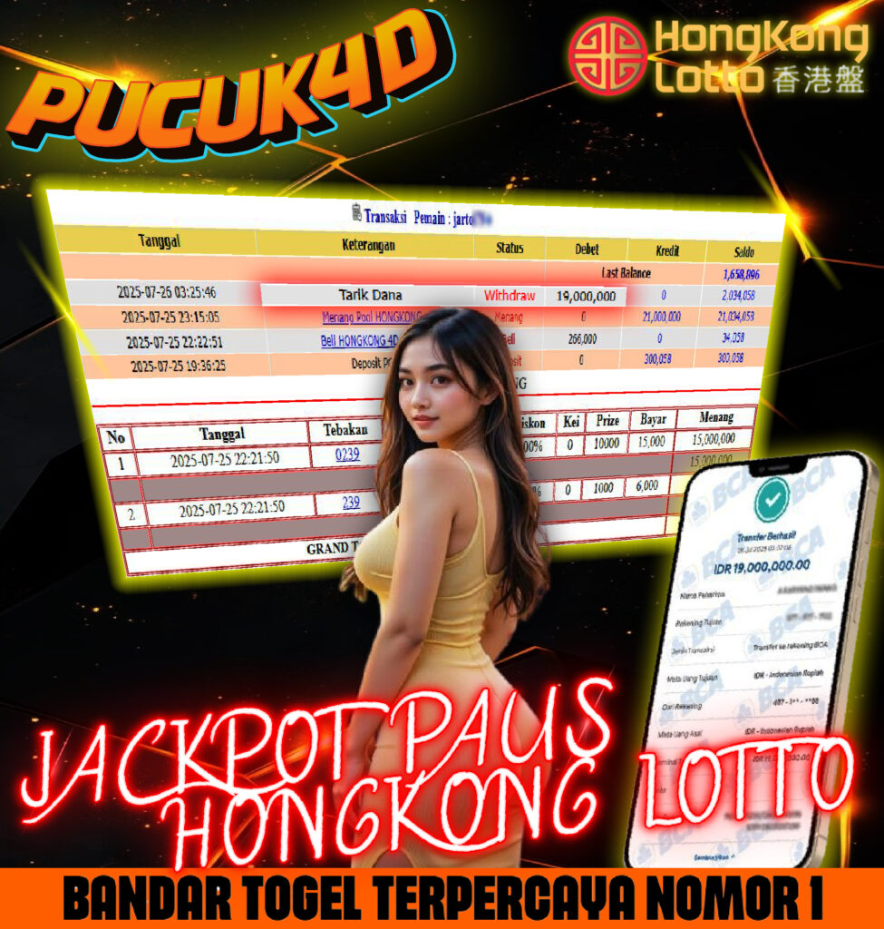 Telah berhasil mendapatkan kemenangan besar di TOGEL ( HONGKONG LOTTO ) dengan kemenangan Sebesar Rp 19,000,000. Setelah mengisi formulir withdraw dengan kurung waktu hanya 5 – 10 menit.Pihak PUCUK4D sudah melakukan transfer kepada pemilik Userid dan dana sudah dapat di cairkan oleh pemenang. Bukti pembayaran yang kami berikan merupakan bukti pembayaran yang SAH / VALID yang langung di dapatkan melaui tanda transfer transaksi dari Bank yang di tuju.